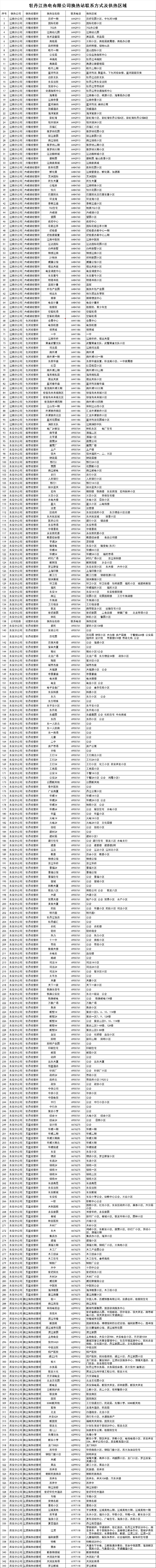 牡丹江熱電有限公司換熱站統(tǒng)計公示